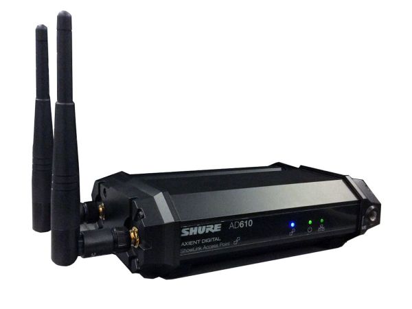 Access point ShowLink AD610 cho phép điều khiển thời gian thực các bộ phát Axient®, bao gồm các seri ADX và AXT. AD610 cho quyền quản lý các tham số của bộ phát từ bộ thu hoặc phần mềm Wireless Workbench sử dụng sóng 2.4 GHz.